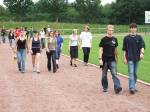Nach dem Startschuss, den auch der Hennefer Bürgermeister Klaus Pipke miterlebte, erliefen die zahlreichen Teilnehmer in der Zeit zwischen 12.00 und 21.00 Uhr auf dem Sportplatz Runde um Runde, um gemeinsam dem großen Ziel näher zu kommen..