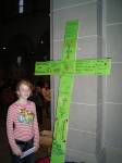 In dem eindrucksvollen Gottesdienst, der ergänzt wurde durch ein Schattenspiel zur Passion Jesu und das einfühlsam vorgetragene Violinspiel der Schülerin Elena Kapitza trugen die Schülerinnen und Schüler ihre im Unterricht erarbeiteten Kreuze dann in den Altarraum und äußerten vor der Gemeinde ihre Gedanken dazu.