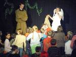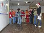 Die ganze Zeit war ein verkleideter Weihnachtsmann auf der Party. Auf Kommando eines Weihnachtsengels stürzten sich alle Schüler auf ihn und rissen dem falschen Weihnachtsmann den Bart ab und nahmen ihm seinen Mantel ab. Das war echt witzig.