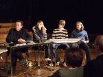 In der anschließenden Diskussion zwischen drei Schülerinnen und Schülern und den beiden Lehrern Winfried Engel und Wilhelm Kersting unter der Leitung von Addi Großmann blieb nach der mehr als zweistündigen Vorführung leider nur wenig Zeit, auf den Film und den eigentlich Anlass - Immanuel Kant - einzugehen. Interessant war aber, dass die Schüler einen innovativen Lehrer Keating durchaus im Unterricht begrüßen würden, während die beiden Lehrer unter Hinweis gerade auf Kant auch deutliche Kritik an ihm übten: Er habe mit seiner forcierten Forderung, selbstständig zu fühlen und zu denken, die von Kant geforderte Unterscheidung zwischen öffentlich und privat gebrauchter Vernunft missachtet (siehe Kants Aufsatz "Was ist Aufklärung?" von 1784), die ihn dazu hätte bringen müssen, die institutionellen Rahmenbedingungen als vorgegebene Realität zumindest anzuerkennen. Insofern trage er tatsächlich, neben dem reaktionären Umfeld natürlich, eine Mitschuld an der Katastrophe.