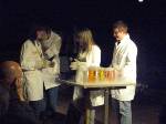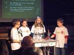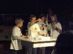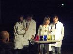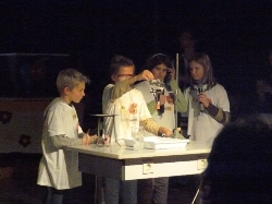 Begeisternd waren vor allem die vielen Versuche, die das Herzstück einer jeden Fragestellung bildeten. Nicht nur spektakulär waren diese Vorführungen - sie waren auch äußerst charmant präsentiert. So offenbarten sich die Schüler der 5b als geborene Showmaster und ernstzunehmende Konkurrenten für Ranga Yogeshwar, der den vielen an der Show Beteiligten mit Expertenrat zur Seite gestanden hatte.