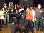 Bei alledem entwickelte sich der Zweikampf zwischen Schülern und Lehrern zum Nervenkitzel: Zunächst und völlig überraschend ging die ausnahmslos vergeistigte Lehrer-Riege in Führung. Dann aber konnten die Schüler aufholen. Schließlich überwog wohl das pädagogische Feingefühl, und zwei mehr oder weniger absurde Lehrerantworten brachten den Schülern den verdienten Sieg. Erhobenen Hauptes verließen die geschlagenen, beruflich Unfehlbaren das Schlachtfeld und bedankten sich bei Herrn Czaja und Herrn Westhofen dafür, an dem gelungenen Spektakel teilgenommen haben zu dürfen.