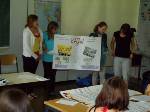 Nach dem abwechslungsreichen Besuch im vergangenen September in Polen konnten sich die deutschen Gastgeber mit einem reichhaltigen Programm revanchieren. Neben den gemeinsamen Ausflügen nach Köln, Bonn und Linz mit zahlreichen Führungen stand wieder die gemeinsame Projektarbeit im Zentrum des interkulturellen Lernens: In kleinen Gruppen haben die Teilnehmerinnen polnisch-deutsche Schülerparteien für ein europäisches Schülerparlament gegründet. Besonders beeindruckend waren neben den Wahlreden bei der Präsentation insbesondere auch die Wahlplakate! Wer einen Einblick in die europäischen Visionen unserer Schülerinnen gewinnen wollte, der hatte auch auf dem Schulfest am 14.06. dazu Gelegenheit. Dort nämlich waren die Plakate zu sehen.