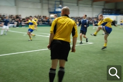 Gebannt wartete das Publikum aus Kolleginnen und Kollegen sowie Schülerinnen und Schülern der Oberstufe nun auf den Anpfiff der Partie, die vom Unparteiischen C. Lückner aus Herford geleitet wurde. Unmittelbar nach Beginn entwickelte sich eine temporeiche Partie, in der zunächst die Ehemaligen optische Vorteile erkämpfen konnten. Zur Halbzeit jedoch führten die Aktuellen, die von Werner Offergeld gecoacht wurden, und der Spatz schien gebraten. Doch von der taktischen Rafinesse und der unerreichten Motivationsdramaturgie des Haudegen Offergeld würden nun die Ehemaligen profitieren. Und so kam es denn auch: Lange Zeit konnten die gegenwärtigen SGHler den Vorsprung halten. Aber die Ehemaligen kämpften sich ran und erzielten wenige Sekunden vor Schluss gar den Ausgleich. Die Partie musste nun vom Elfmeterpunkt aus entschieden werden, was sich jedoch auf Grund überragender Torhüterleistungen als schwierig herausstellte. Nach gefühlten 23 Elfmetern konnten die Ehemaligen den Siegtreffer landen und adelten somit die Trainerkarriere von Werner Offergeld.