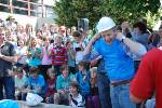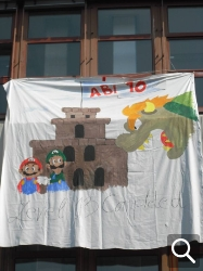 Doch anders als ihre Vorbilder mussten Mario und Luigi keine Hindernisse überwinden, sondern sie stellten ihrerseits das Lehrerkollegium vor die Aufgabe, Frau Beemers aus den Händen der frisch gebackenen Abiturienten zu befreien. Und während die Lehrkräfte mit vereinten Kräften Kistentürme bauten, eine Wasserbombenwurfmaschine entschärften und mit waghalsiger Geschwindigkeit auf Rennautos unterwegs waren, erfreute sich die versammelte Schülerschaft an den kleinen Sticheleien und Demütigungen. Die häufig sehr feuchten Strafen nahm der ein oder andere Kollege allerdings aufgrund des sommerlichen Wetters fast schon dankbar in Kauf.