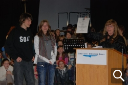 Die Urkunde wird sie daran erinnern, dass sogar der Bürgermeister und die Elternvertreter gekommen waren, um ihnen die Ehre zu erweisen. Herr Pipke stellte denn auch die Rolle von Bildung als Standortfaktor im Wettbewerb der Kommunen heraus, womit nicht nur die Schule den Neunern für das tolle Abschneiden dankt, sondern sogar die ganze Stadt.