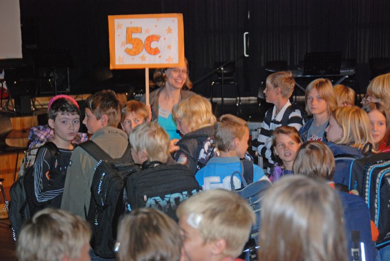 Nach dem Gottesdienst fand im PZ die offizielle Aufnahmefeier statt. Dabei boten die con brio-Klasse 6d von Herrn Busch und der Schulchor Musikalisches, unter anderem den SGH-Song. Grußworte sprachen Frau Beemers, der Schulpflegschaftsvorsitzende Herr Raderschad sowie der neue Leiter der Erprobungsstufe, Herr Heiseke. Dieser nahm die Neuen direkt in die Pflicht und stellte ihnen so manche knifflige Frage. Doch die frischgebackenen SGHler parierten souverän. Den verzagteren unter ihnen sprachen der Schülersprecher Julian Yogeshwar und zwei Vertreter der Klasse 6b Mut zu.