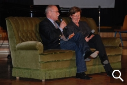 Da war zum Beispiel der für uns verantwortliche Dezernent der Bezirksregierung, Herr Beyer, der Frau Beemers' Wirken von Seiten der Schulaufsicht würdigte. Natürlich sprach auch Herr Pipke als oberster Repräsentant des Schulträgers seinen Dank aus. Dass Frau Beemers im Kreise ihrer Amtskollegen eine fachlich geschätzte und menschlich beliebte Kollegin war, wurde in der Rede des Vorsitzenden der Bezirksdirektorenkonferenz, Herrn Teubler, deutlich. Der Vorsitzende der Schulpflegschaft, Herr Raderschad, ließ Frau Beemers eine Ehre zu Teil werden, die sonst nur gebürtigen Hennefern und echten Hennefer Bürgern vorbehalten ist: Sie durfte auf dem berühmten Hennefer Sofa Platz nehmen und wurde dort von Herrn Raderschad interviewt. Wahrhaft exotisch wurde es im Rahmen eines weiteren Beitrags der Elternschaft, denn es wurde orientalischer Tanz vom Feinsten geboten. Die Schülerinnen und Schüler der SV sorgten mit einem gekonnt vorgetragenen, unterhaltsamen Rap auf Frau Beemers für einen weiteren Höhepunkt.