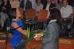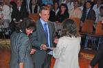 So konnte Schulleiter Herr Roth in seiner Rede die Bestmarke verkünden, was wohl auch für die Abiturientia eine freudige Überraschung darstellte. Bürgermeister Pipke würdigte ebenso die Leistungen des Jahrgangs 2011, auch wenn er selbst als früherer Absolvent des SGH zu den Überbotenen gehört. Herr Raderschad, Vorsitzender der Schulpflegschaft, rechnete die Leistung der Abiturienten in teils wissenschaftlicher, teils kaballistischer Manier in physikalische Größen um und Herr Kersting, dessen Abschied von unserem Gymnasium ebenfalls in Kürze bevorsteht, hielt die Abiturrede im Namen des Kollegiums. Auch die jüngsten gratulierten durch ein unterhaltsames Grußwort an die Abiturientia, in deren Namen Ben-Jamin Otten an die versammelten Eltern, Verwandten, Lehrerinnen und Lehrer das Wort richtete.