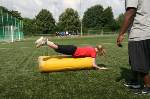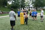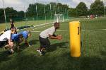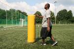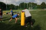 Kurz vor Schluss schlüpften Kai und Alex in ihre Brustpanzer, setzten die Helme auf und demonstrierten verschiedene gelernte Spielzüge und Tacklings; nur mit dem Unterschied, dass es bei ihnen um einiges härter zuging als zuvor bei uns. Zum Schluss gab es ein Abschlussturnier, welches von den Trainern als Schiedsrichter begleitet wurde. Obwohl manche in der Folge noch etwas mit Muskelkater zu kämpfen hatten, war es ein gelungener Tag, der mit einem Flyer und einer Freikarte für ein Spiel der Jets zum Ende kam.