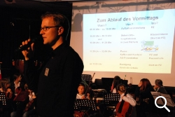 In der Eingangshalle präsentierten sich derweil die Arbeitsgemeinschaften der Ganztagsjahrgänge, akustisch dominiert von Herrn Schwalls Trommel-AG. Der dumpfe Schlag der großen Trommel dürfte so manchem Oberstufenschüler geholfen haben, nicht dem Schlaf anheimzufallen, der doch angesichts des vorangegangenen längeren Aufenthalts in der Kölner Innenstadt so nötig war.