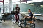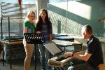 Gelhausen arbeitet häufig mit dieser Form des Gruppenunterrichts, in der einer oder eine der Sänger(innen) singt und persönliche Korrekturen erhält, während die anderen zuschauen bzw. in den Prozess, beispielsweise als fiktive Zuschauer, einbezogen werden. „Ich fand es sehr interessant den anderen zuzuhören und zu sehen wie sie die Tipps umsetzen,“ so Hannah aus der EF.