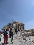 Als wir den Berg der Akropolis zum ersten Mal sahen, wirkte er einfach riesig auf uns, beeindruckend und niemand von uns hatte Lust, am nächsten Tag dort hinaufsteigen zu müssen. Morgens wechselten wir dann viele genervte Blicke, als es hieß, dass wir den Berg am Nachmittag besteigen sollten, und das auch noch zu Fuß bei der Hitze, die an diesem Tag herrschte! Andererseits wollten wir natürlich auch alle das Wahrzeichen Athens sehen und Fotos von den alten Tempeln machen, die Akropolis ist schließlich weltbekannt und die Tempel sind wunderschön. Also sollten wir nachher erfahren, dass der Aufstieg sich auf jeden Fall lohnte und noch nicht einmal so lang und anstrengend war wie erwartet. Oben angekommen, konnten wir dann nicht nur die kunstvollen Tempel bestaunen, sondern auch im strahlenden Licht der Sonne und bei angenehmem Wind die Aussicht über ganz Athen genießen, eine Stadt, aus der an vielen Stellen immer wieder Hütel zu wachsen scheinen, was man allerdings nur verstehen kann, wenn man selbst auf den Mauern der Akropolis stand und die Ausstrahlung dieses Berges und der Stadt, über der er thront, genossen hat.