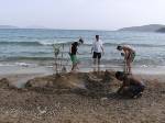Die Jungen bauten eine Sandburg, woran auch unser Schulleiter Gefallen hatte und engagiert mitarbeitete.