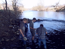 Den Schülern des 12er Biologie LKs von Herrn Westhofen standen unter fachkundiger Anleitung des Umweltpädagogen Ottmar Hartwig chemische und physikalische Untersuchungsgeräte, PC, Digitalkamera und Videoanlage und eine kleine Fachbibliothek zur Verfügung um in arbeitsteiliger Gruppenarbeit drei inhaltliche Schwerpunkte zu bearbeiten: