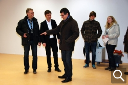 Bürgermeister Pipke, weitere Vertreter der Stadt als Bauherrn, Schulleiter Roth und die Schülersprecherin Maggi Buchmüller besichtigten gemeinsam mit Vertretern der örtlichen Presse den Baufortschritt im Mensabereich und bei den neuen Kunsträumen. Die Musentempel sind kurz vor der Vollendung und wirken bereits äußerst inspirierend. Optisch setzen sie die Linie der neuen NW-Räume fort.