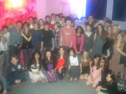 Am Abend des vierten Tages (12.3.12) trafen wir uns in der Pierre et Marie Curie Schule und führten verschiedene Sketche, und Tänze auf. Die Eltern unserer Austauschschüler sorgten für ein leckeres Buffet, das so üppig war dass für jeden etwas dabei war. Das Programm war improvisiert. Das lag vor allem daran,dass fast keiner die Zeit hatte vorher zu üben. Dennoch bekamen wir viel Lob, selbst die Schulleiterin war beeindruckt. Nachdem all diese Meisterwerke präsentiert worden waren, schauten wir uns noch die kleinen Filmchen an, die die Schüler beider Nationen vorher zu Hause gedreht hatten. Dazu wurde extra eine grosse Leinwand aufgestellt, leider kamen die Filme trotzdem nicht wirklich zur Geltung, da der Ton so leise war, dass niemand etwas verstehen konnte. Dennoch war die Stimmung gut, und es war alles in allem ein gelungener Abend.