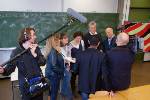 Der Hennefer Journalist Bamdad Esmaili besuchte das SGH mit einem Team vom WDR-Studio Bonn. Drei Ehemalige erhielten vor der Kamera die Früchte ihrer früheren Anstrengungen. Frau Marsfelder, Frau Heller und Herr Dobrowolski nahmen ihre Klausuren aus der Hand von Frau Glaser entgegen und warfen einen kurzen Blick hinein. Später stieß Herr Dr. Gilich dazu, der die Schülerinnen noch aus ihrer aktiven Schulzeit am SGH kannte. Man schwelgte in Erinnerungen und das Team vom WDR hatte mehr Material im Kasten, als es benötigt hätte.