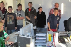 Nach dien Basisinformationen durften wir in das brandneue Exemplar der Zeitung hineinschnuppern und alle unsere Fragen wurden beantwortet. So erfuhren wir, dass jeder Mitarbeiter sein ganz eigenes Fachgebiet hat, sei es nun Sport, Kultur oder Regionales. Anschließend konnten wir auch beobachten, wie eine Zeitungsseite entsteht und wie die Mitarbeiter Einfluss nehmen können. Auf den weißen Seiten sind einzelne Textfelder angebracht und jeder weiß genau, wo er welchen Artikel einzuordnen hat. Die Zeit verging sehr schnell und zum Abschluss durften wir noch zwei Mitarbeitern über die Schulter sehen, welche sich um Fotos kümmerten oder E-Mails lasen, die von Leuten eingehen, die hoffen, einen Artikel über sich in der nächsten Ausgabe zu sehen. Natürlich können nicht alle berücksichtigt werden, doch wenn eine E-Mail viel versprechend klingt, so wird dieser Spur nachgegangen. Wir lernten sogar noch den Chef der Abteilung kennen, der uns für unsere Wahl des Projektkurses lobte und uns bereitwillig noch weitere Informationen zur Verfügung gestellt hätte, wenn die Zeit da gewesen wäre.