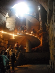 Unsere nächste Station, zu der wir liefen, waren die Kaiserthermen. Diese Thermen wurden nie wirklich fertig gestellt und später zu Kasernen umgebaut. Einen besonderen Anblick bei der Besichtigung boten die unterirdischen Gänge. Die Wege waren alle irgendwie miteinander verbunden, aber trotzdem ziemlich verwirrend. Noch dazu kam, dass diese Gänge nicht sehr gut beleuchtet waren, besser gesagt, nur durch das Tageslicht. Dadurch hat man sich ziemlich leicht erschrocken, wenn plötzlich jemand aus einem Gang kam und man ihm begegnete.
