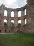 Nach dieser Besichtigung gingen wir einen Teil der Fußgängerzone wieder zurück und bogen nach links ab Richtung Basilika. Dies war früher eine Palastaula, deren Wände so dick sind, dass unser Bus darauf hätte fahren können. Außerdem erfuhren wir vieles über die römische Bauart, die auch hier angewendet wurde. Heute wird die Basilika als Kirche genutzt, in der noch immer Gottesdienste stattfinden.