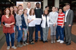 Genau € 3500 war der Betrag, der nun von den Schülerinnen und Schülern der Nigeria-AG an Father Nwokoye Vincent übergeben werden konnte. Der Geistliche gehört dem Orden an, der die Lucy Memorial School führt, und er kennt die Schule gut, für die er stellvertretend den Scheck entgegen nahm.