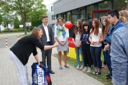 Am Mittwoch, den 25. Juni 2014, erhielten die Sporthelfer Besuch von Frau Susanne Biemer von der Sportjugend des Kreissportbundes Rhein-Sieg. Im Gepäck hatte sie ein umfangreiches Ballsortiment, das den Sporthelfern natürlich nicht einfach übergeben sondern zugeworfen wurde. Das Ballsortiment, das nun Ausrüstung der Sporthelfer erweitert, ist das Dankeschön für den engagierten Einsatz der Schülerinnen und Schüler als Sporthelfer in diesem Schuljahr.