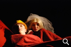 Ganz zu Anfang tobt also im PZ der Sturm. Als sich die Wolken lichten, entpuppt sich die Insel - Prosperas magisches Reich - als Kinderzimmer. Die Topographie des PZ perfekt nutzend, interpretiert die Theater-AG Shakespeares arkardische Inselutopie als die in sich geschlossene kindliche Welt zwischen Prinzessin Lillifee und Bob dem Baumeister. Was die Zuschauer aber in den folgenden gut zweieinhalb Stunden erleben, geht weit über die Abenteuer belebten Spielzeugs à la Toy Story hinaus. Das liegt nicht nur an den zum Teil gar nicht kindlichen Verweisen auf körperliche Freuden, wie sie die Zeitgenossen Shakespeares in Komödien erwarteten. Ausgehend von den hervorragenden schauspielerischen Leistungen aller beteiligten Darsteller kommen die komödiantischen wie auch die mystisch-magischen Elemente der Vorlage zum Tragen. Das Ensemble unter der Leitung von Frau Teubler, Herrn Czaja und Frau Floer hat mit seiner Inszenierung eine gleichsam schlüssige wie unterhaltsame Interpretation des 400 Jahre alten Stückes abgeliefert. Dies quittierten die Zuschauer, die am Abend der zweiten Aufführung zahlreicher hätten sein können, mit angemessenem Applaus.