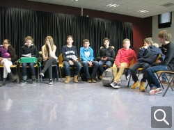 Für den Unterricht wurden wir aufgeteilt. Nick, Max, André, Lukas, Helena, Lea, Denise und ich waren in einer Gruppe. Wir gingen in Madame Badors Unterricht. Sie unterrichtete ein Jahr ältere Schüler. Diese haben letztes Jahr den Austausch mitgemacht. Jeder von uns sollte sich zwischen zwei ältere Franzosen setzen. Ich glaube, ich saß zwischen Olli und Francois. Wir sollten zunächst uns vorstellen, und dann haben sich die anderen vorgestellt. Am Ende sollten die Franzosen die Deutschen vorstellen und die Deutschen die Franzosen. Ich glaube, dies war eine Einzelstunde, weil sie sehr schnell vorbei ging. Danach hatten wir eine Pause. Das war sehr lustig und wild, weil alle Franzosen auf uns zugestürmt sind und uns unendlich viele Fragen gestellt haben. Nach der Pause wurden die Gruppen kleiner. Joseph zeigte uns, d. h. Lea, Helena, Nick und mir, unseren Raum. Wir hatten eine Stunde Englisch in einer ein Jahr jüngeren Klasse. Wir haben ein Spiel gespielt. Man musste er kennen, welche von drei Aussagen über bestimmte Personen eine Lüge sind. Unsere Gruppe hat, obwohl wir die Personen nicht kannten, gewonnen.
