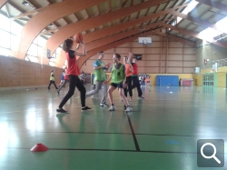 Am Mittwoch sind wir nach dem Musikunterricht zur Sporthalle zu einem gemeinsamen Basketballturnier gegangen.Der Weg zur Sporthalle selber hat fast eine Viertelstunde gedauert. Ich frage mich, ob der Sportunterricht immer dort stattfindet, denn durch den Weg allein fällt ja schon ein Teil der Stunde weg. Naja, auf jeden Fall waren wir dann an der Sporthalle haben uns umgezogen und sind in die Halle gegangen. Diese sieht ganz anders aus als die von unserer Schule. Das Dach verläuft in der Mitte zusammen, also wie bei Häusern, große Fenster sind an den Wänden und die Halle ist holzummantelt. Als alle in der Halle waren haben wir uns in 8 verschiedene Mannschaften aufgeteilt, sodass in jeder Gruppe deutsche und französische Schüler waren. Es gab 3 Spielfelder und jedes Spiel dauerte 4 Minuten. Die Schiedsrichter waren Schüler aus Gruppen, die gerade selber kein Spiel hatten. Meine Mannschaft war sehr nett und es hat mir Spaß gemacht, obwohl ich echt nicht gut in Basketb all bin. Ich denke durch das gemeinsame Spielen haben sich alle nochmal besser kennen gelernt. Am Ende habe ich dann auch fast gegen jede Mannschaft gespielt. Kurz vor Ende der Stunde sind wir zurück zu den Umkleiden gegangen. Danach konnten wir noch Wasser und Cola trinken.