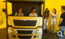 Die Lernstationen waren so gestaltet, dass das Arbeiten daran Spaß machte. Man machte automatisch mit und schaltete nicht ab. Bei der Station „Toter Winkel“ durfte man in einen Simulations-LKW einsteigen, und die anderen Gruppenmitglieder haben sich so hinter den erhöhten, dennoch nicht allzu langen LKW gestellt, dass der Fahrer einen nicht mehr sehen konnte. Somit hat man selbst ein Gespür dafür bekommen, ab wann man übersehen wird.