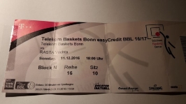 Am Sonntag, den 11.12.16, trafen wir uns um 16 Uhr am Hennefer Bahnhof, um gemeinsam zum Telekom Dome in Bonn zu fahren. Vom Bonner Hauptbahnhof nahmen wir einen Shuttlebus zur Halle. Nachdem wir unsere Plätze eingenommen hatten, waren es noch 20 Minuten bis Spielbeginn, in denen wir uns noch ein bisschen stärken konnten. Dann begann das Spiel – Telekom Baskets vs. Rasta Vechta. Den ersten Korb warfen die Telekom Baskets, obwohl Rasta Vechta in den ersten drei Vierteln die überlegenere Mannschaft war. Am Ende des letzten Viertels schafften es die Telekom Baskets gerade noch so ein 77:77 zu erzielen und so in die Nachspielzeit (Overtime) zu kommen. In der Overtime waren die Baskets die Überlegenen und gewannen mit 88:83. Noch aufgedreht vom Spiel begaben wir uns zur Shuttle-Haltestelle. Dadurch, dass das Shuttle so lange brauchte, verpassten wir leider unseren Zug und mussten die U-Bahn nehmen. Glücklich aber erschöpft wurden wir schließlich um ca. 22 Uhr von unseren Eltern am Bahnhof abgeholt. Wir hatten sehr viel Spaß und sagen Danke an „Be smart- don’t start“ für diesen tollen Gewinn.