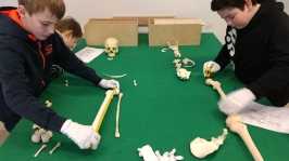 Die Busfahrt vom SGH bis zum Museum dauerte knapp eineinhalb Stunden. Vom Busparkplatz gingen wir zuerst in das Gebäude, in dem der Workshop stattfand. In diesem Workshop durften wir an nachgestellten Knochen versuchen, sie anhand der Merkmale, die uns der Workshopleiter gezeigt hatte, nach Geschlecht, Größe und Alter zu untersuchen.