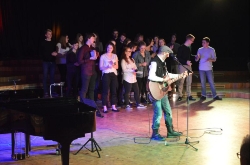 Wer schon früher bei verschiedenen musikalischen Veranstaltungen in unserer Schule war, der dürfte auch dieses Mal ein vertrautes Gesicht entdeckt haben. Tristan Pohl, ehemaliger Schüler des SGH, stand bereits viele Male auf der Bühne und war auch dieses Mal dabei.