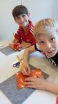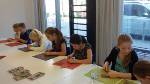 Nach der Führung haben wir in unserer Gruppe in einem Nebenraum selber Orden hergestellt. Erst haben wir mit Stiften dünne Bronzeplatten bearbeitet. Man konnte seinen Namen und noch Tiere oder ähnliches darauf „malen“. Noch schnell verzieren – und fertig war der eigene Orden!