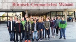 Am 21.09.2017 besuchten wir mit unserer Lateinlehrerin Frau Kloppenburg und unserer Geschichtslehrerin Frau Dresbach-Klaas das römische Köln. Da das Römisch-Germanische Museum ab Dezember für längere Zeit wegen Umbauarbeiten geschlossen werden wird, nutzten wir die Gelegenheit, uns die berühmten Exponate des Museums (z. B. das Dionysosmosaik und das Grabmonument des L. Poblicius) im Original anzusehen. Während der Besichtigung erfuhren wir auch viel über die Stadt Köln als Wirtschaftszentrum der Antike. Die Archäologin Frau Rücker zeigte uns die Kopie der Tabula Peutingeriana. Das ist eine Karte des römischen Imperiums mit dem Straßennetz von den Britischen Inseln bis nach Zentralasien. In der Mittagspause genossen wir dann ohne Lehrer die freie Zeit in der Kölner Innenstadt und nutzten die Zeit für einige Shoppingtouren. Danach gingen wir am Rhein entlang zum Sportmuseum und erhielten eine Führung zum Thema „Sportliche Zeitreise“. Wir erfuhren viel über die antiken Sportstätten und den Beginn der Olympischen Spiele mit den einzelnen Disziplinen. Später durften wir auch an verschiedenen Stationen einige Sportarten ausprobieren. Auf dem Soccer-Court des Sportmuseums haben wir dann noch abschließend mit der gesamten Klasse eine Runde Fußball gespielt.