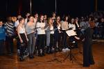 Nach der 6d betrat das ConMoto-Orchester die Bühne. Sie präsentierten „Jingle Bells” unter der Leitung von Herrn Brüntink, welcher das Ensemble im Sommer 2018 von Hendryk Mühlbach übernommen hat.