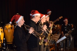 Die zweite Hälfte startete ganz klassisch mit dem Orchester, welches sein erstes Konzert unter Frau Nonnemanns Leitung spielte. Nach Ausschnitten des Nussknackers beendete das Orchester den Auftritt mit einem „007-Medley”. Die Sängerin der Projektkursband, Luisa Bäumer, gab zusammen mit dem Drummer der BigBeats und dem Projektkurs zwei engelsgleiche Klavierballaden. Hier konnte Marius Möller sein musikalisches Talent zeigen, da er neben den Drums auch das Klavier meistern durfte. Den Abschluss machte die Big Band „BigBeats” unter der Leitung von Herrn Brüntink. Nach einem Stück der Scorpions, in dem Felix Kolvenbach das Ensemble unterstützte, zeigte die Big Band ihr Weihnachtsrepertoire. Hier durfte der Sänger Lukas Bertzen sein „Talent” am Glockenspiel zeigen. Zum Abschluss sang ein Zusammenschluss aller Musiker mit „Last uns Froh und Munter sein” noch ein kleines Liedchen. Froh und munter endete also das Konzert und entließ das Publikum in die Adventszeit.