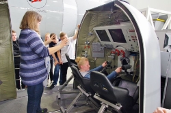 Uns wurde gezeigt, was Astronauten vom Start auf der Erde bis zur Ankunft auf der ISS tun und wie dieser Flug zumeist aussieht. Auch das sogenannte „Andocken“ der Flugkapsel an die Raumstation wurde uns erläutert. Natürlich wurden wir auch aufgeklärt, welche Risiken es gibt, wenn man sich ins Weltall begibt: Beispielsweise die Kosmische Strahlung, der Abbau der Muskeln und der Druckunterschied zwischen der Raumstation und dem Weltall. Mit diesem Druckunterschied beschäftigten wir uns auch, nachdem wir ein Video zu dem Basic Training der Astronauten sahen. Wir besichtigten das Tauchbecken, in welchem die Astronauten lernen, mit der Schwerelosigkeit umzugehen.