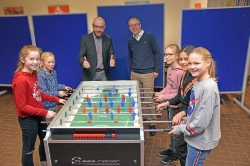 Schülerinnnen und Schüler freuen sich überhochwertigen Kickertisch.