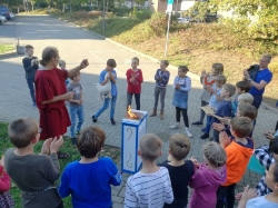 Höhepunkt war wie jedes Jahr das abschließende Opferritual, das Römerdarsteller Kai-Ingo Weule zusammen mit den Kindern durchführte.
