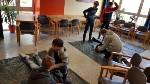 Die Sporthelfer verbrachten den Tag in einer nahegelegenen Sporthalle, wo sie Sport trieben und Ausbildungselemente wiederholten, wie das Leiten von Gruppen oder auf verschiedene Situationen zu reagieren. Abends aßen wir Pizza und vertrieben uns die Zeit mit Tischtennis und Gemeinschaftsspielen.