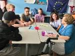 Danach begaben wir uns in vier Kleingruppen. In jeder Gruppe ein Senior bzw. Frau Jany. In diesen Gruppen bekamen wir unterschiedliche Szenarien, welche wir diskutieren sollten. Die Gruppe mit Frau Jany behandelte die EU im Jahr 2050, falls sie nicht mehr existiert. Und stellte sich den Fragen, welche Auswirkung dies auf die Europäer und die Welt hätte. Eine andere Gruppe, mit einem Senior, namens Herr Kausch, beschäftigte sich mit der EU im Jahr 2050, wenn sie noch existiert und diskutierten Auswirkungen sowie Vor- und Nachteile. Die letzten zwei Gruppen mit Herrn Schwarz und Frau Jaitonyi beschäftigten sich mit der Gegenwart und damit, wie Europa und die Welt jetzt wären, wenn die EU nie so zustande gekommen wäre.