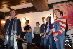 Annika Käufer, Clara Glosch, Leif Oppermann und Lennert Ludwig hatten sich als absolute Newcomer in den Tagen davor im Rahmen eines Workshops erstmalig mit dem Format Poetry Slam auseinandergesetzt und erste Texte verfasst.