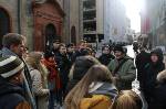 Am nächsten Morgen fuhren wir nach Leipzig, wo wir zunächst die Innenstadt erkundenden durften. Um 12:30 Uhr ging es dann mit einer Stadtführung los, bei der Zeitzeugen von der Friedlichen Revolution in Leipzig berichteten. Zwar war es eisig kalt während der Führung, doch wirklich auf den Straßen und neben den Gebäuden zu stehen, wo vor 30 Jahren die Montagsdemonstrationen für die Demokratie stattfanden, war die Kälte auf jeden Fall wert.