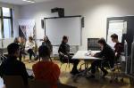 Nach der Museumsführung begann unser Projekttag in der Stasi-Zentrale. Der Projekttag beinhaltete drei Themen, denen sich die Schüler*innen jeweils anschließen konnten. Die erste Gruppe stellte in Form eines kleinen Rollenspiels vor, wie die Stasi damals Spitzel rekrutierte. Die anderen beiden Gruppen bereiteten sich auf Debatten vor um die die Fragen „Sollen ehemalige DDR-Bürger ihre Akten einsehen dürfen?“ und „Ist es okay, dass ehemalige Stasi-Mitarbeiter nicht im öffentlichen Dienst arbeiten dürfen?“. Die beiden Gruppen waren jeweils für oder gegen die Fragen und bereiteten sich in Gruppen auf die Debatten vor. Ein jeweiliger Sprecher der Gruppen stellte in einem Plädoyer die Meinung der Gruppe vor, worauf die andere mit einem eigenen Plädoyer erwiderte.