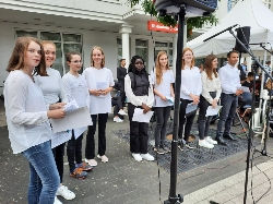 Schulchor des SGH musiziert beim Benefizkonzert auf dem Hennefer Marktplatz