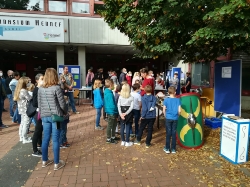 Nachdem der Römertag im letzten Jahr ausfallen musste, konnten Kinder aus den vierten Klassen in diesem Jahr endlich wieder einen Nachmittag lang am SGH erleben, wie die Römer vor 2000 Jahren gelebt haben. Neben den Mitmach-Aktionen unseres Römer-Darstellers Kai-Ingo Weule, alias Legionär Marcus Rufinius, gab es verschiedene Stationen zum Lernen und Reinschnuppern in die Welt der Römer. Die zukünftigen Lateiner*innen lösten lateinische Spruchrätsel, spielten typische Gesellschaftsspiele der damaligen Zeit oder lernten ihre ersten lateinischen Wörter.