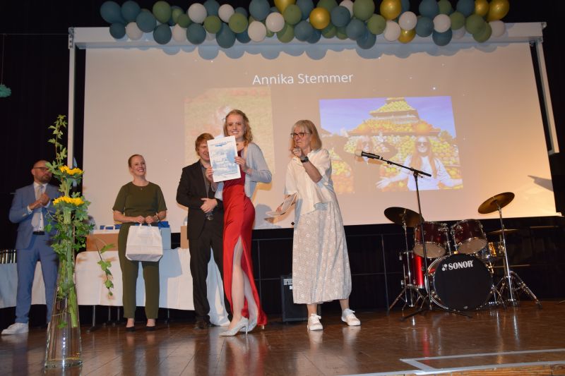 Musische Höhepunkte setzten zum einen Len Jäger, der am Flügel seine Interpretation von Jamie Duffys „Solas“ gab. Zum anderen waren es die Chucksticks mit Christine Glorch, Katharina Krämer (beide Abi 23), Leah Derksen und Nele Rodigast, die unter anderem mit einem Medley aus Adele und Linkin Park aufwarten konnten.