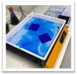 Zunächst haben wir das Agarose Gel durch Erhitzen gelöst und anschließend in die Gelelektrophorese Kammer gefüllt. Dort konnte es abkühlen. Bevor es mit dem Gel weiterging, wurde die Proben (DNA, RNA oder Proteine) vorbereitet. Dafür wurden sie in eine Lösung eingebettet und evtl. verrührt. Durch den sogenannten „Spalter“ wurden die Proben in eine Vertiefung in Mittels des Gels gegeben. Das Elektrische Feld wurde angelegt, indem wir die Elektroden an die Ober- und Unterseite der Kammer angeschlossen haben. So konnte das elektrische Feld was erzeugt wurde, die Moleküle in Richtung Anode drängen. Nach dem Abkühlen der Gele, wurden diese gefärbt, um die Moleküle sichtbar zu machen, und um anschließend gründlich ausgewaschen zu werden.